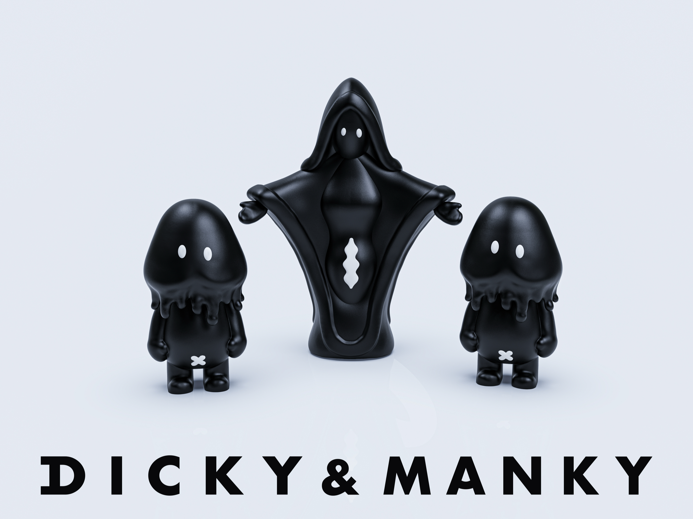 さて、ここからは今回新たに制作した「MANKY」について少しだけお話したいと思います。例のごとくギリギリまで考えあぐねた挙げ句、お酒のノリを再び借りて制作したのが「MANKY」ですが、モチーフについてはお察しのとおりです。「DICKY」と対になるものを、というのは当初から構想としてあったのですがデザインや細かな設定をなかなか決めきれない期間が長く続きました。「MANKY」の目については「DICKY」と共通点がありますが、それ以外の身体的特徴は大きく「DIKCY」と異なっています。その理由ですが、実は「MANKY」は「DICKY」のような生物ではありません。「MANKY」は「DICKY」が生み出した偶像であり……つまり「DICKY」たちの崇拝の対象として生み出されました。それはどこか聖母的な存在で「DICKY」を子として見たてた時に、「MANKY」については母が子を抱きしめられるようなサイズ設計にしています。他にも色々と込めた想いはありますが、そこらへんはどうぞ好きに妄想してみてください。