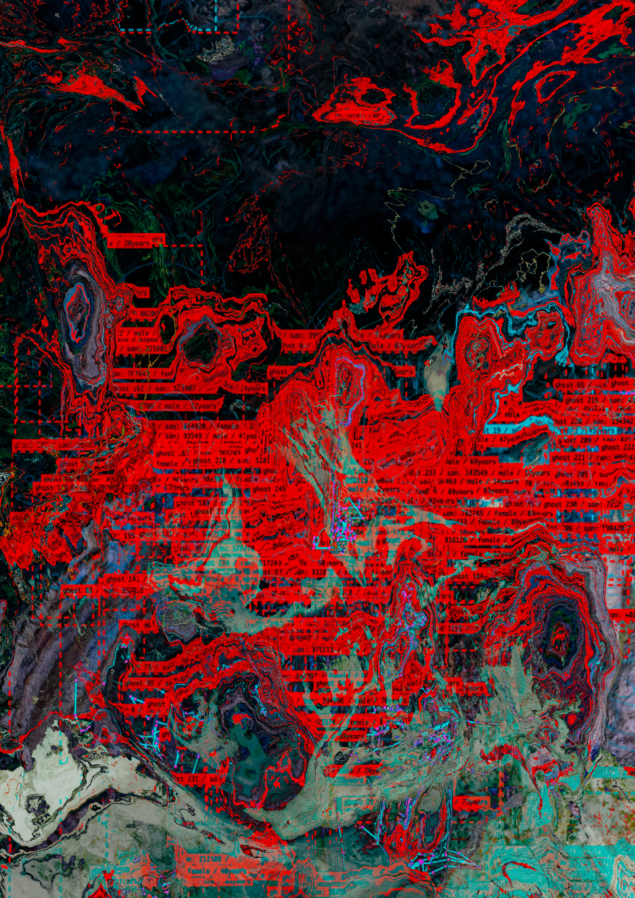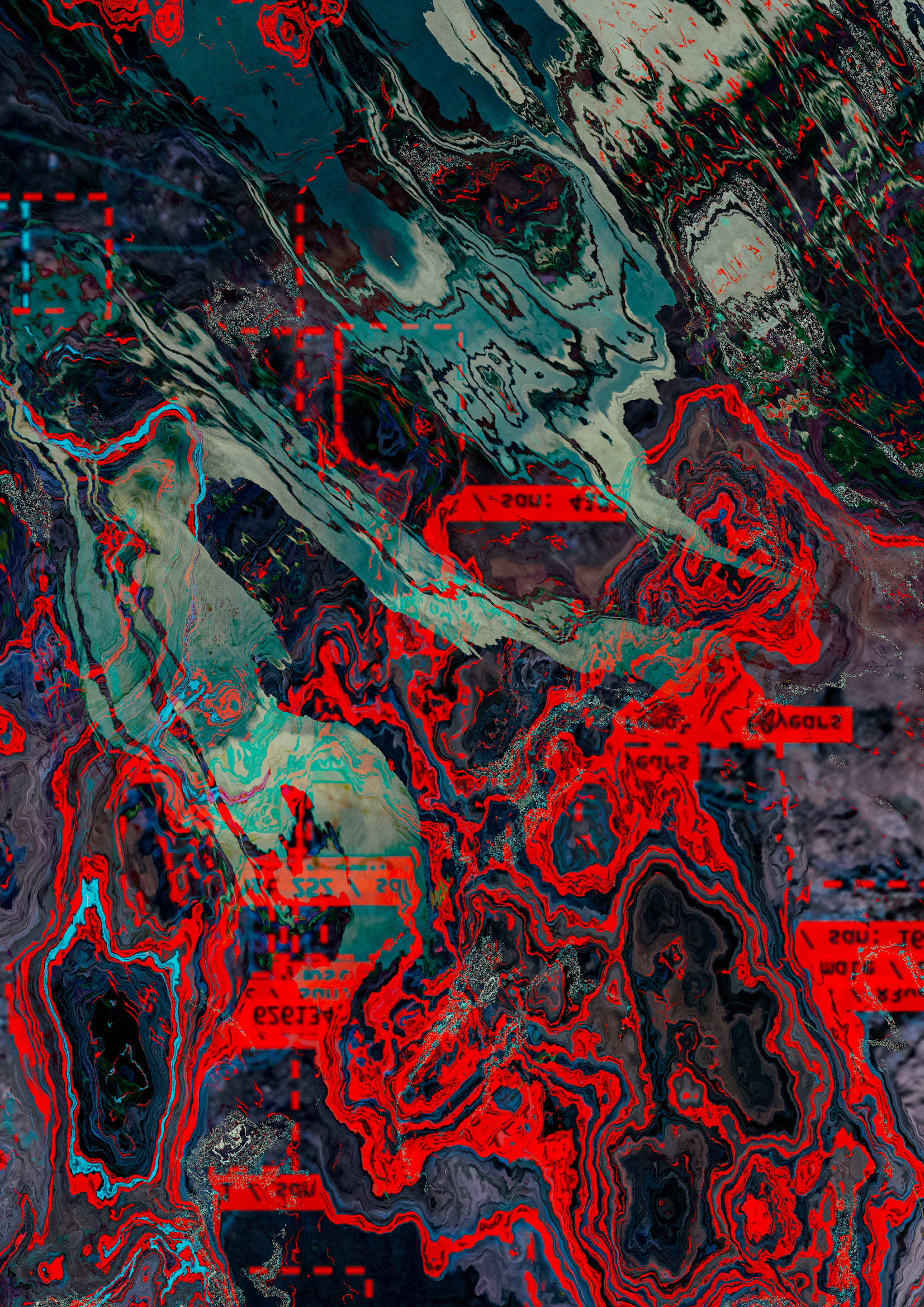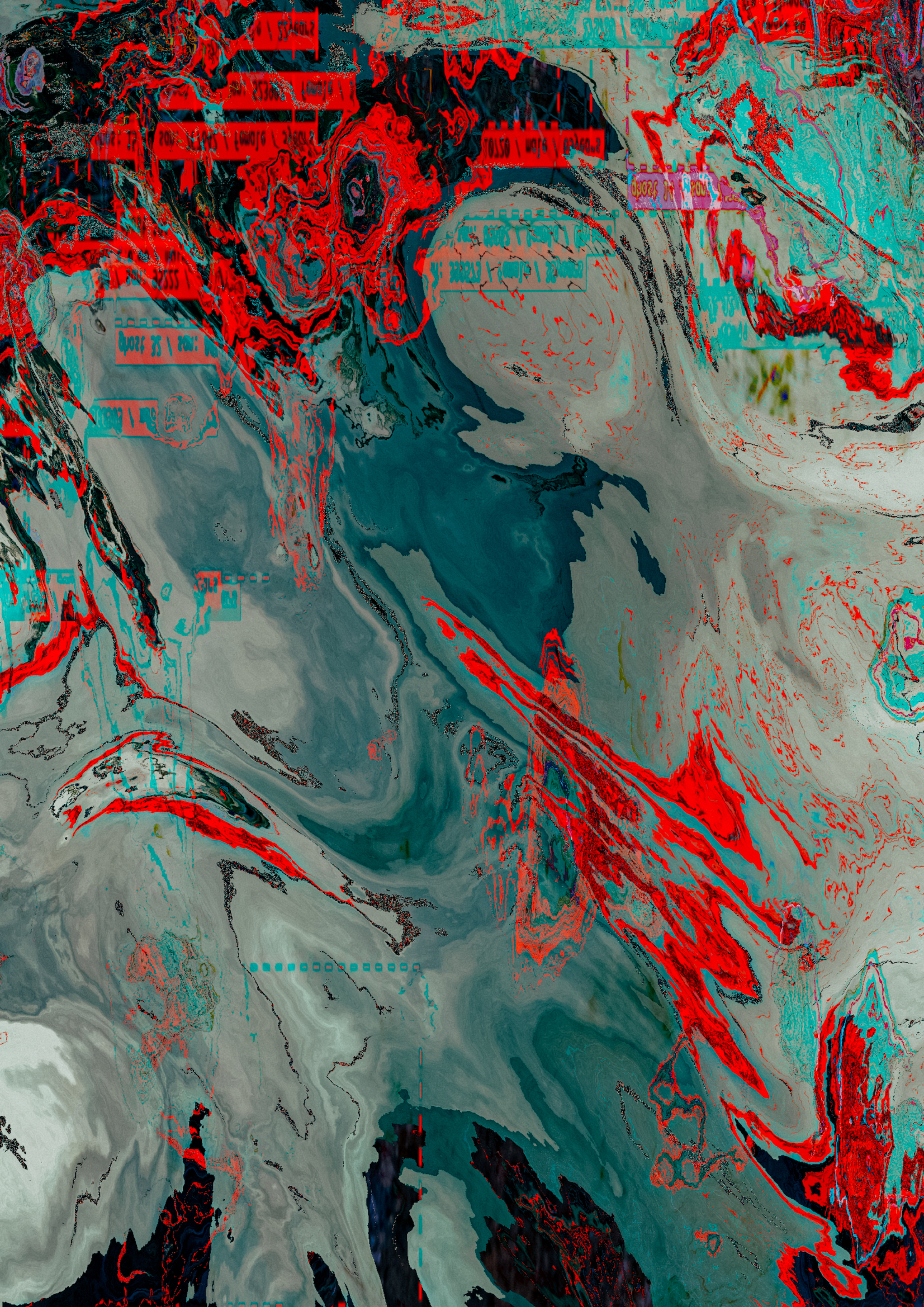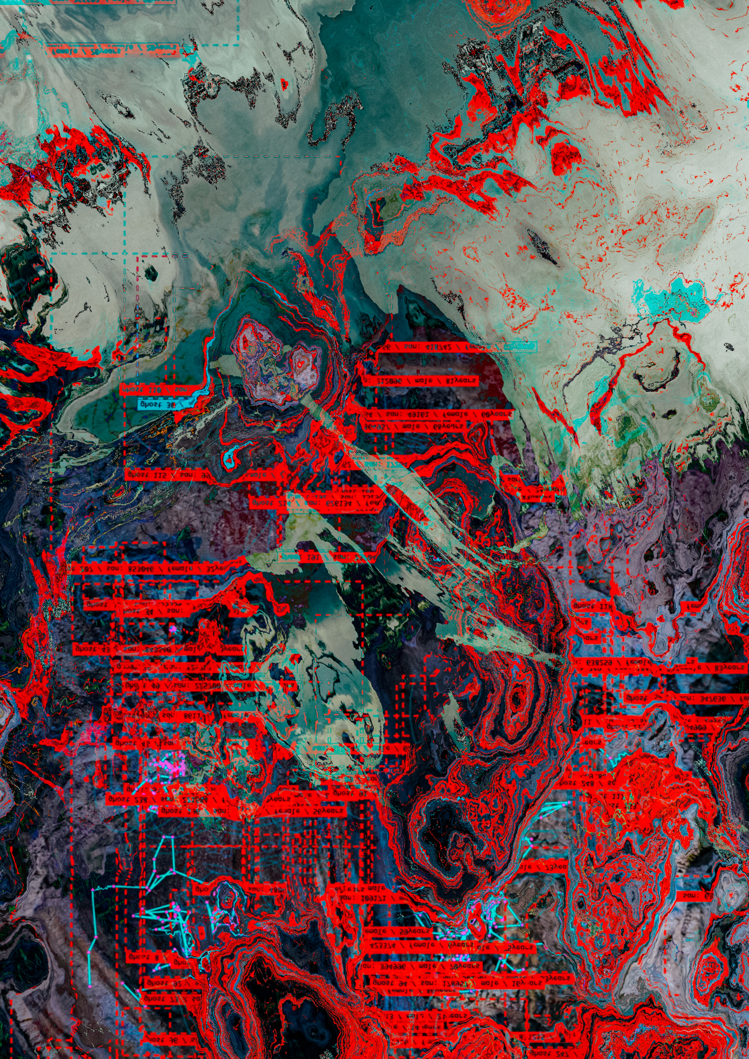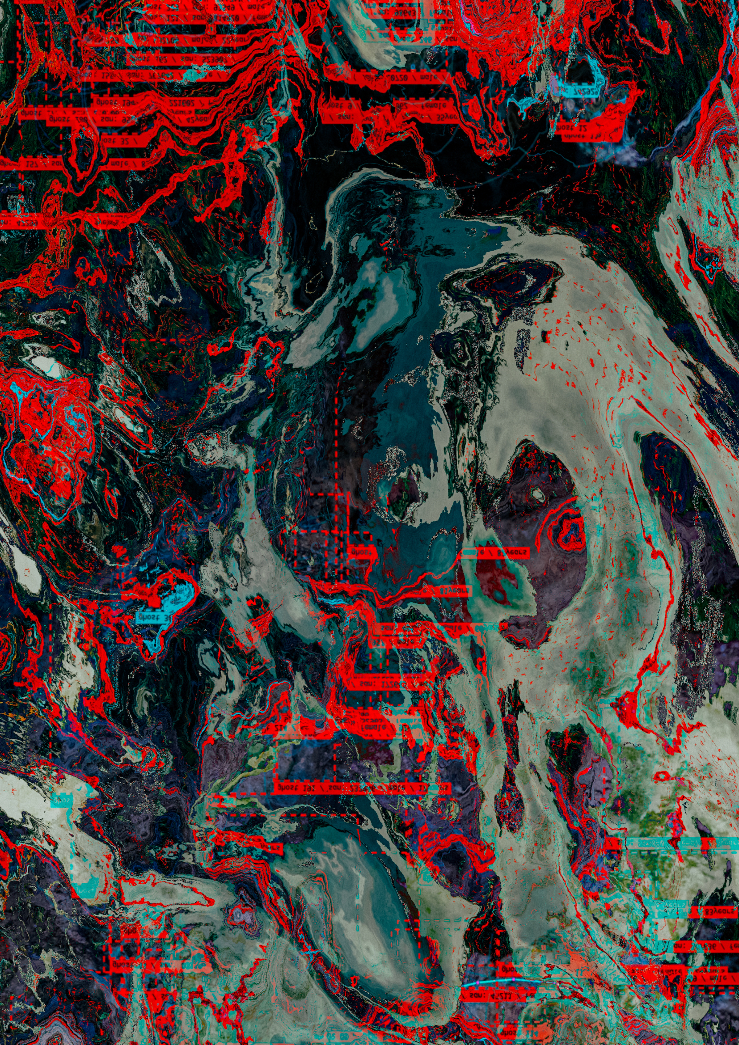 - 点線状の微細線や格子が重なり、表面が“測量図”や“検査票”に似た印象を与える(格子痕)