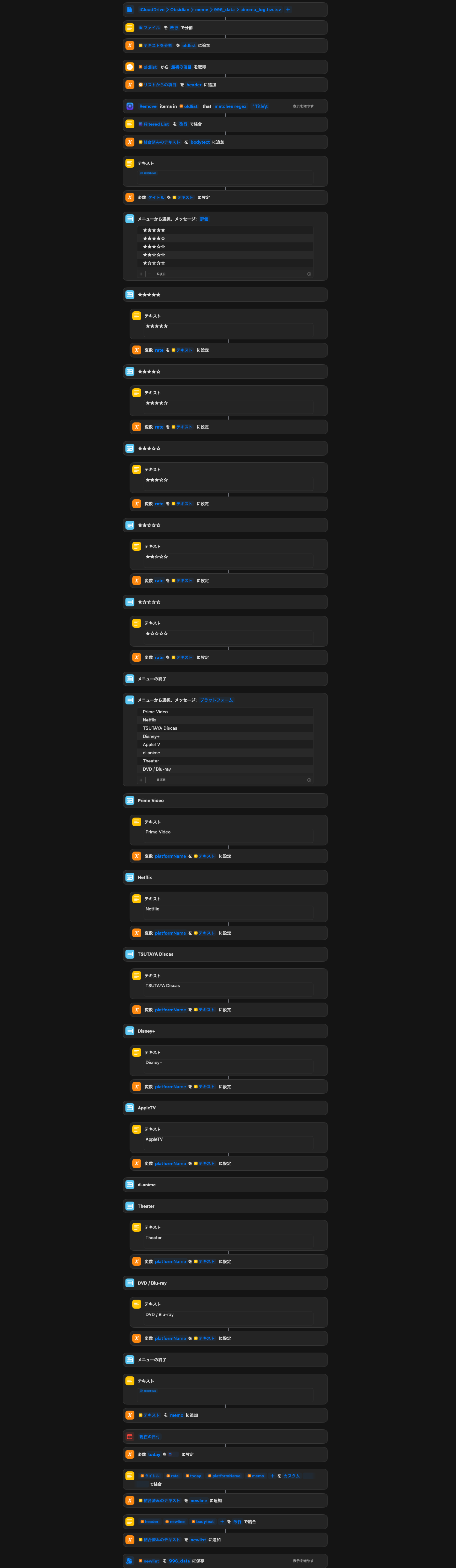 僕の場合は映画鑑賞ログについてはMac側では編集しないので、ショートカットに安全策は追加しなかった。