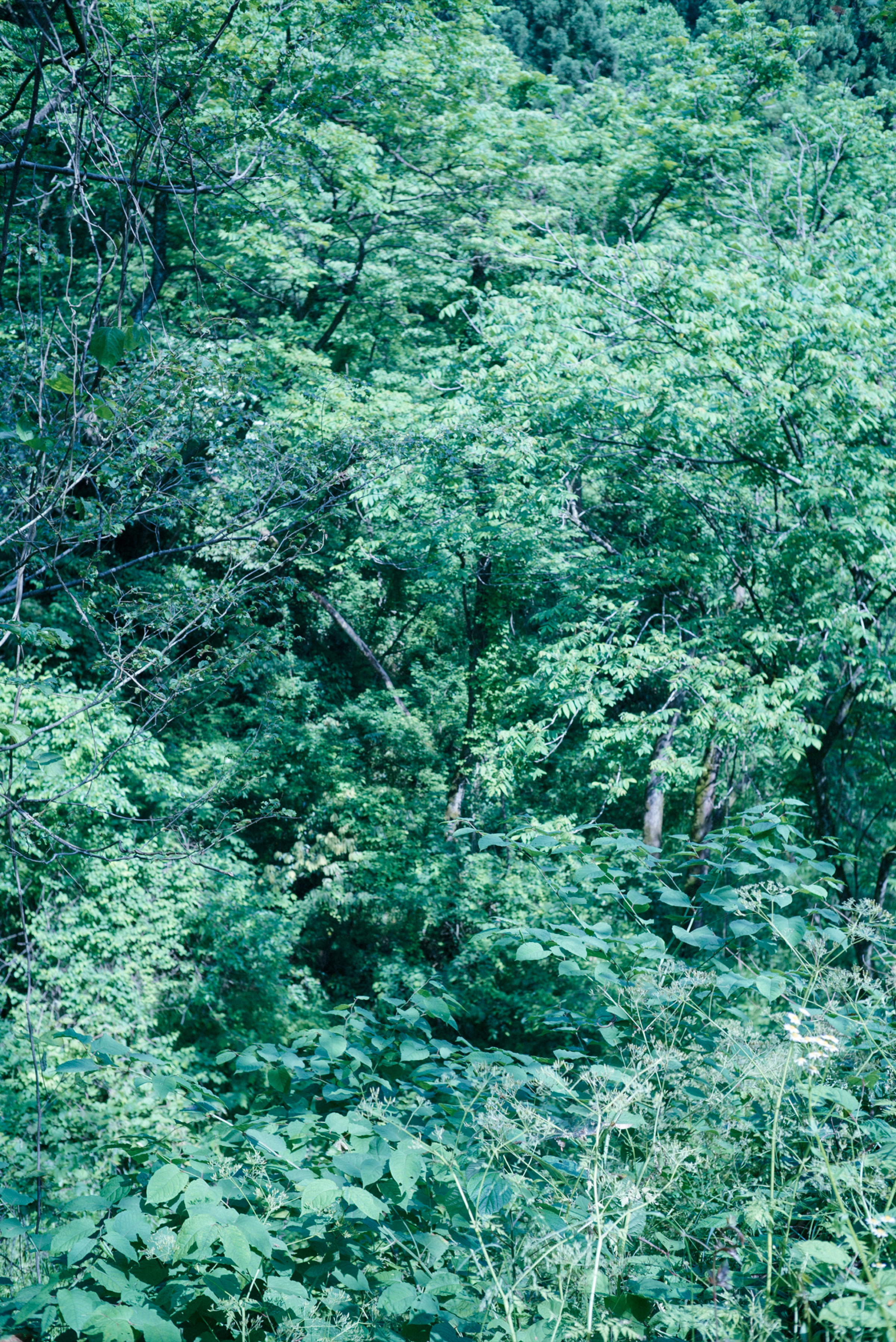 / 2021.05.28 / outdoor / Walking in the woods 打ち合わせが思ったよりも早く終わったので、近くの森を少しだけ歩く。ここらへん一帯は急な斜面になっており、下の方からは水が流れる音が聞こえる。せせらぎまで降りていってみようと思ったが、歩きはじめて2分で道は行き止まりに。来た道を引き返そうと後ろを振り返ると、強い風が吹いた。今まで静かだった森が一斉に騒がしくなり、不思議と夏を気配を感じた。目についた適当な岩に腰を下ろし、一本だけタバコを吸い車へと戻った。