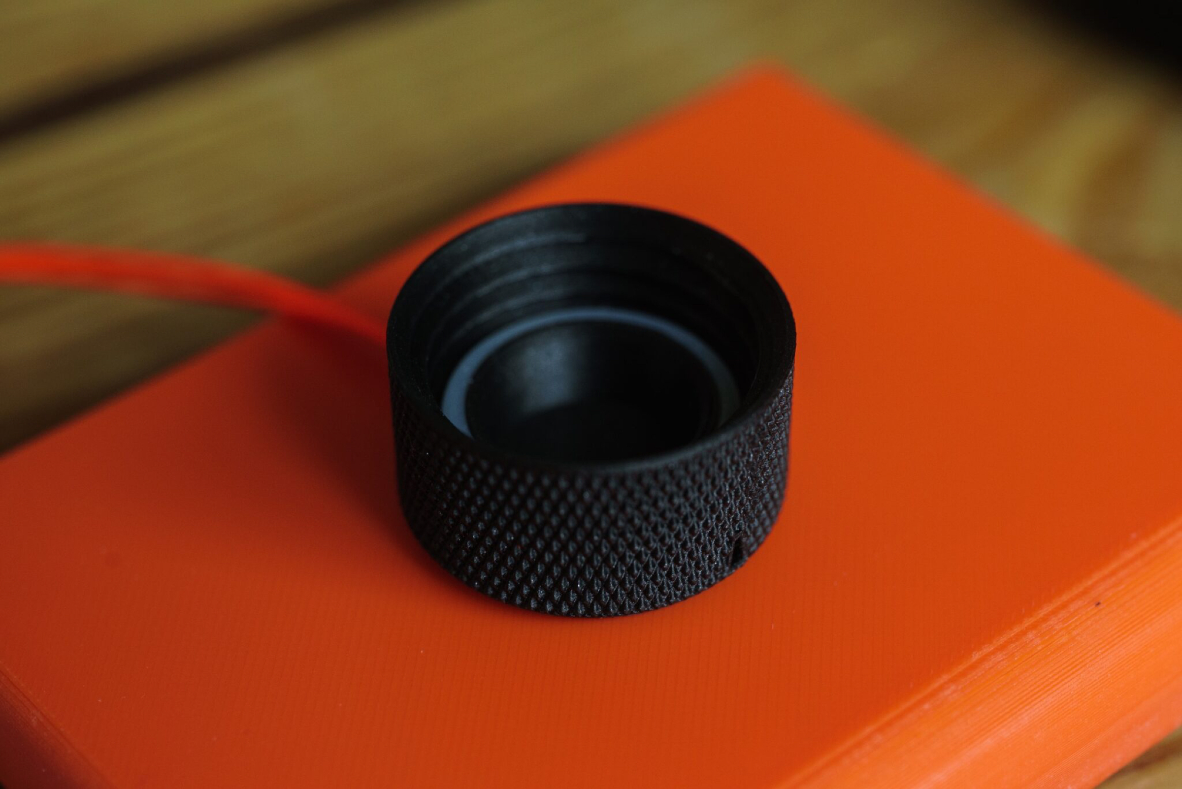 PLA Metal(アイアングレーメタリック)を購入し、本携帯ウォシュレットを出力してみたところ、微妙にしっくりこなかったので、ペットボトル風の意匠から金属製ロータリーノブ風の意匠にデザインを修正し再出力した。もはやボトルキャップウォシュレットぽさが失われてしまったけど、最高にクールになったと思う。あとは実践あるのみ。